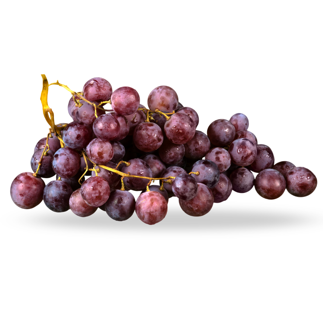 Uvas moradas frescas, jugosas y llenas de sabor, ideales para consumir solas, en ensaladas o como parte de un postre saludable. Estas uvas son una excelente fuente de antioxidantes, especialmente resveratrol, que ayuda a proteger el corazón y a prevenir el envejecimiento celular. También aportan vitamina C, fibra y potasio, fortaleciendo el sistema inmunológico y favoreciendo una buena digestión.